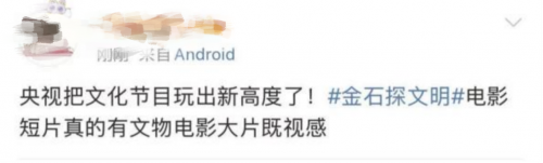 节目“电影+考古+科技”的创新模式也得到普遍认同,国宝文物蕴含的历史文化价值唤起强烈的文化自信和自豪感。