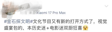 自1月3日首期节目播出以来,CCTV-1黄金时段收视率达0.93%,收获54个热搜热榜,微博阅读量1.8亿,央视频单期播放量超560万。万千网友在评论区自发安利,直呼“过瘾”“被两千多年前的文明魅力征服”,形成了现象级的文化传播效应。