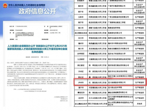 近日,人力资源社会保障部办公厅、财政部办公厅联合发布《关于公布 2025 年国家级高技能人才培训基地和技能大师工作室项目单位备案名单的通知》,郎酒股份沈毅技能大师工作室成功入选国家级技能大师工作室,这是郎酒在技能人才培养与技艺传承领域的又一重要突破,也标志着其品质建设体系再度获得行业高度认可。
