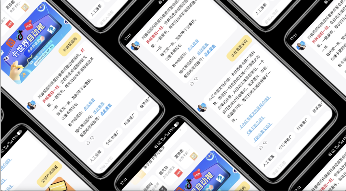 独家研发的 AI 助理系统覆盖代理全流程:AI 教程库包含 120 + 套自动分享模板,智能回复系统准确率达 92%,可应对 85% 的用户常规咨询;AI 推广工具支持一键生成抖音短视频、小红书图文、B 站笔记等多平台内容,代理发布效率提升 70%。大学生代理小林透露:“用 AI 自动剪辑推广视频,日均出单量从 3 单涨到 12 单,还省出时间备考”。