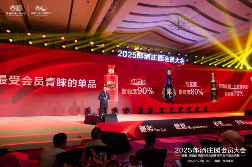为会员创造更多价值体验,活动现场,郎酒销售公司副总经理兼青花郎事业部总经理易明亮发布了《2025郎酒庄园会员服务报告》,全面展示了2025年郎酒庄园会员中心通过“会员尊享产品、高品质活动、庄园专属体验”全面服务会员。